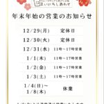 年末年始営業のお知ら