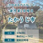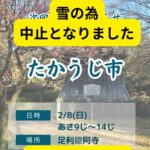 たかうじ市、雪の為中止になりました 楽しみにされていた皆様、 申...